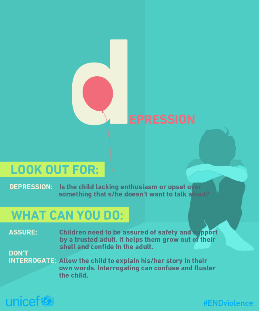Depression – Does the child lack enthusiasm and seem depressed and refuses to talk about what’s troubling her?