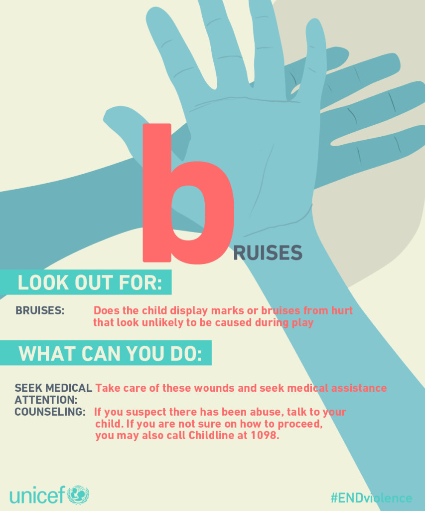 Bruises – Does the child display marks or bruises from hurt that looks unlikely to be caused by play?