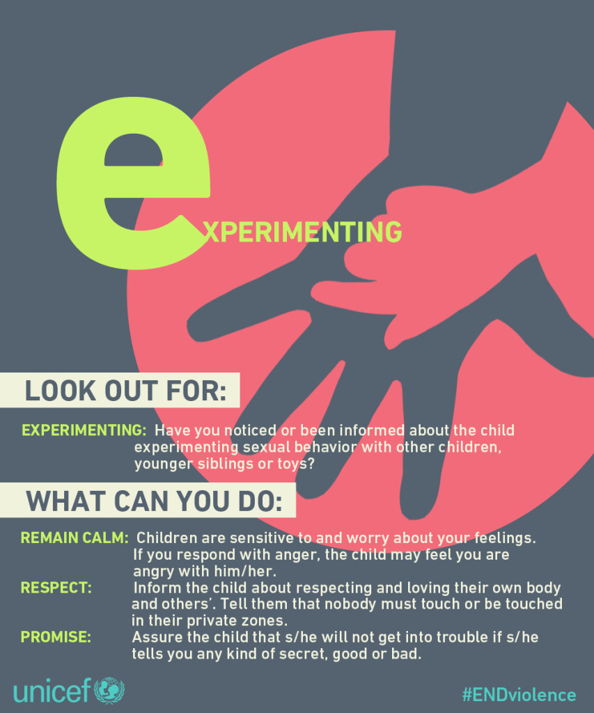 Experimenting – Have you noticed or been informed about the child experimenting sexual behaviour with other children, younger siblings or toys?